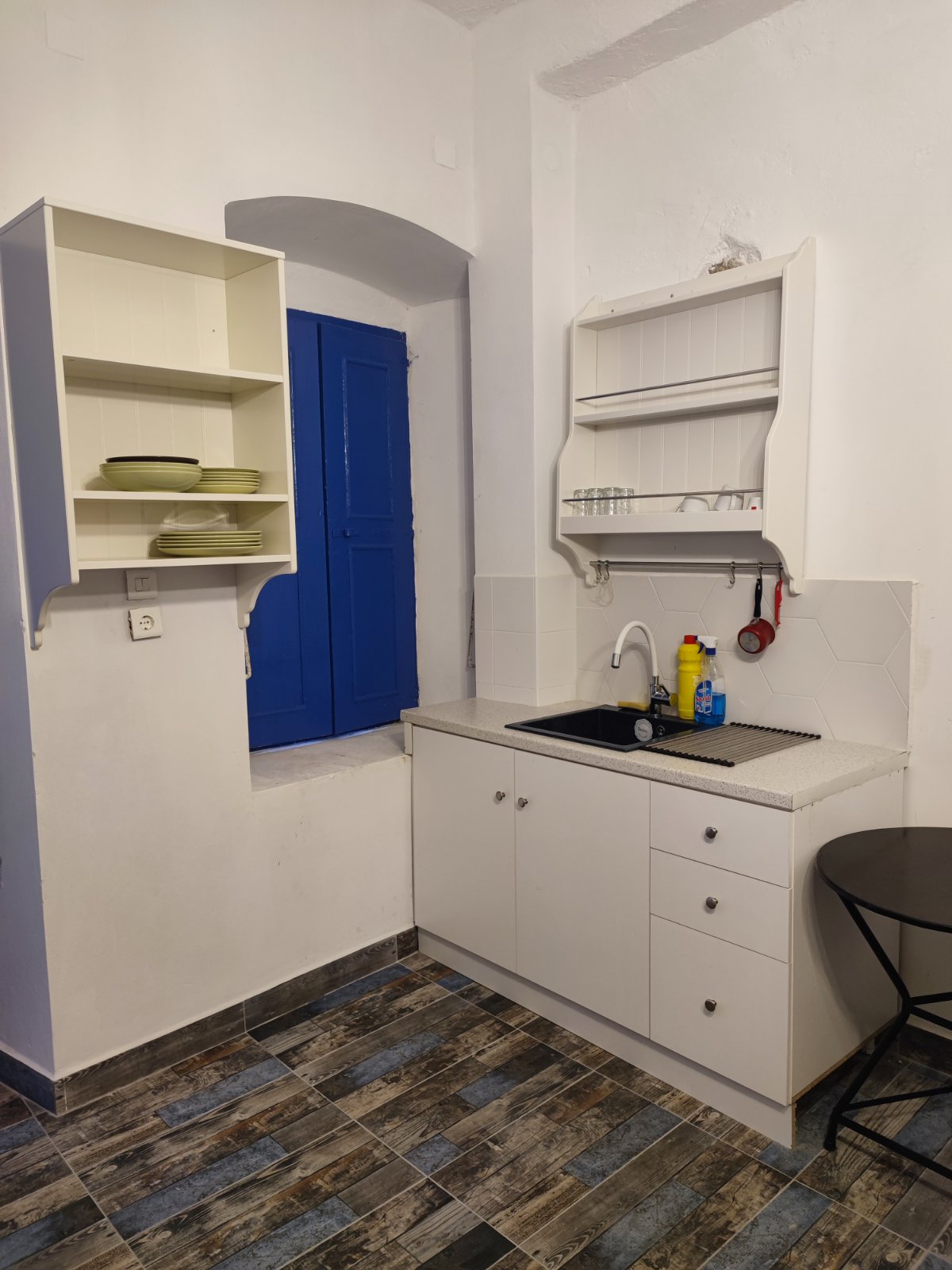 It has electricity and water and is recently renovated. It is easily accessible because it is located just a few meters from the picturesque square of Platanos. The area is quiet and you will find all kinds of amenities nearby such as supermarkets, shops, cafes, pharmacy etc.