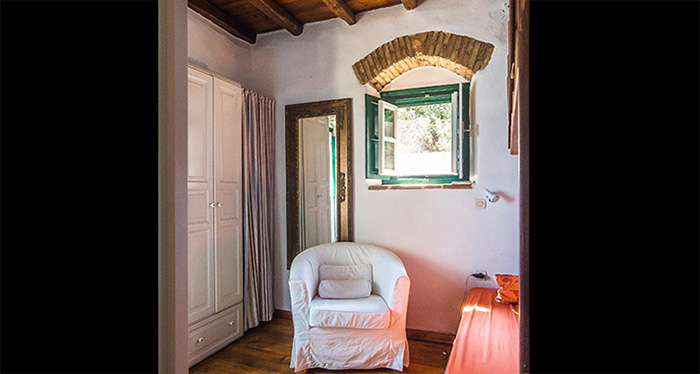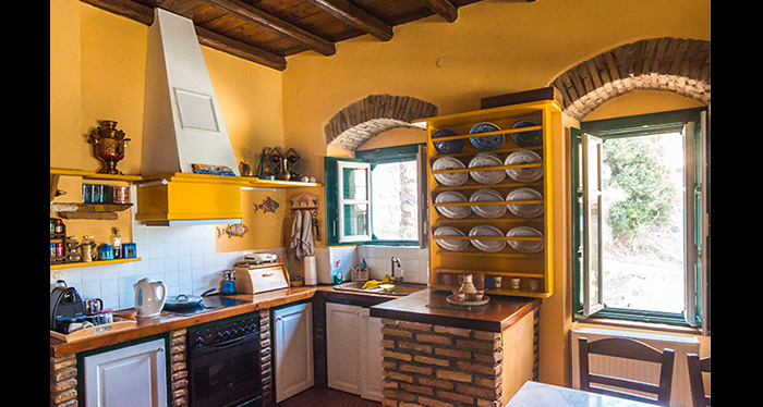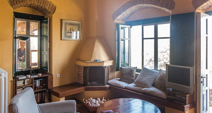It is entirely built in the traditional way, in stone, with wooden ceilings and wooden floors. It covers an area of 200 m² on a plot of 2.200 m². It consists of a spacious entrance with a big glazed-in sitting area, a living area in two levels (a living room with a dining area in the first level and a kitchen in the higher level), a master bedroom with a walk-in closet and an on suite bathroom, and of four more bedrooms and two bathrooms. The property has also three verandas with stunning views to the sea and a breathtaking sunset.