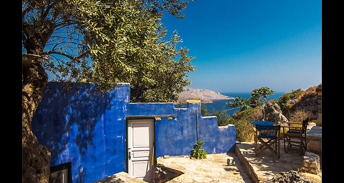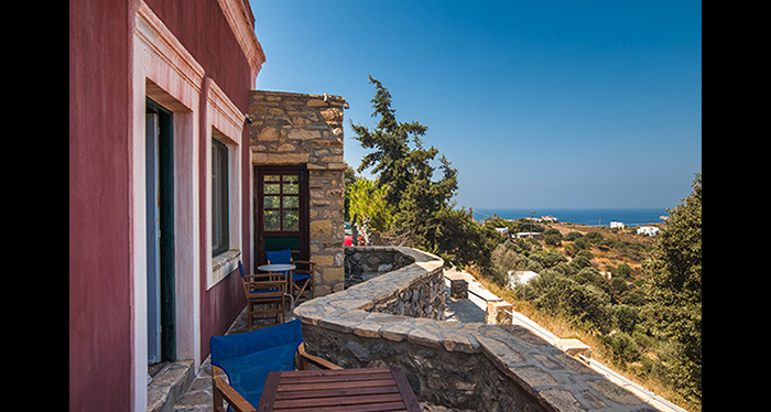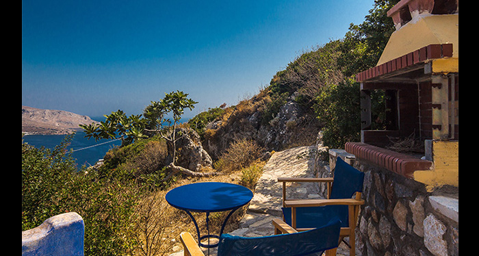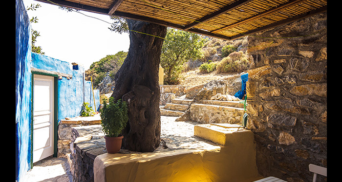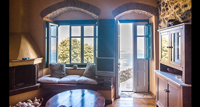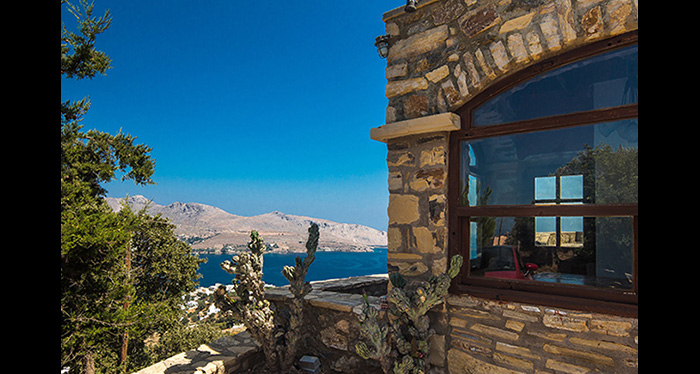 This stone house of unique architecture is built in a rocky steep slope, overlooking three bays and keeping company to the sea eagles.