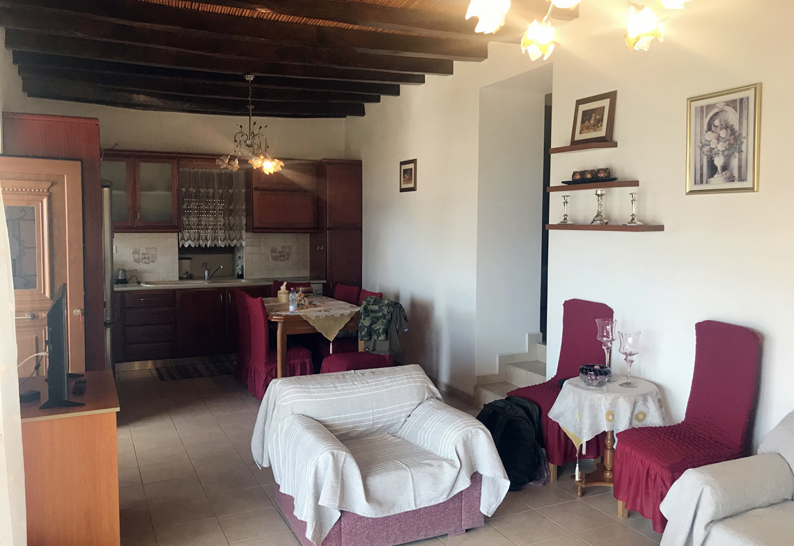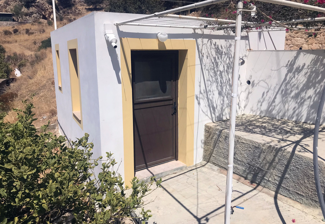 Il se compose de deux chambres, d’un espace cuisine/salle à manger/salon ouvert, d’une salle de bain, vérandas sur deux côtés et un terrain avec des arbres fruitiers. Il y a aussi une pièce séparée avec une cuisine et un espace de rangement sur le terrain. Il est situé dans le quartier paisible de Xirokampos, avec de belles vues sur la baie, pas trop loin de la plage et des restaurants. Accessible par la route d’un côté et par des marches de l’autre. À distance de marche de la boulangerie et des magasins locaux et à 10 minutes en voiture du centre commercial et du port de Lakki.