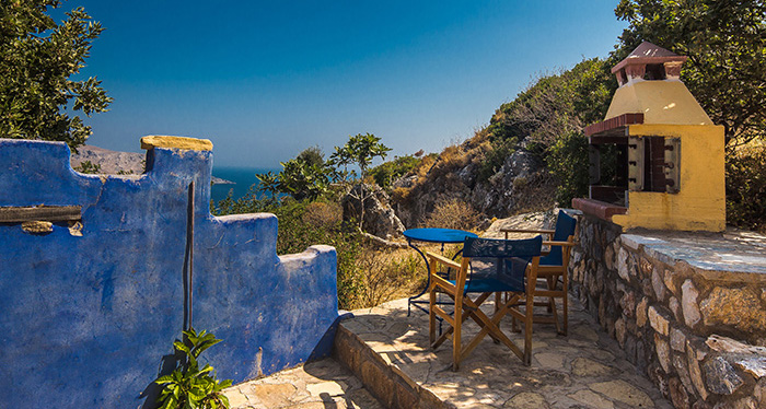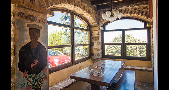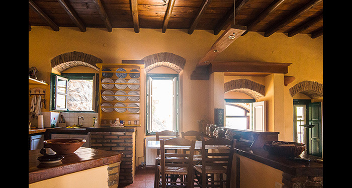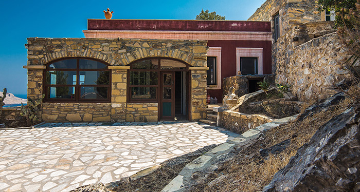 This stone house of unique architecture is built in a rocky steep slope, overlooking three bays and keeping company to the sea eagles.