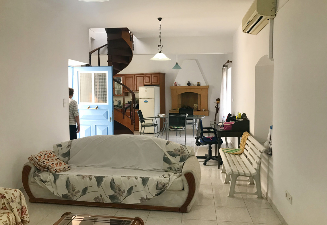 It is located in the convenient area of Evangelismos, right between Platanos square and the port of Ayia Marina, within walking distance to all local amenities. Suitable for permanent residence and as a vacation home.